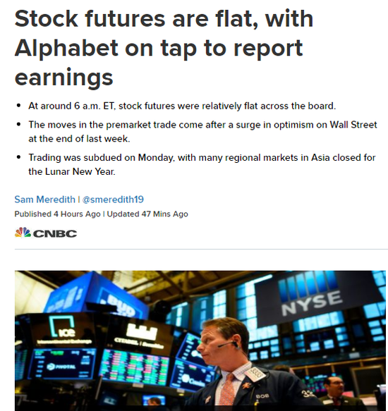 新浪美股讯 北京时间2月4日消息 美国股指期货周一盘前微升,美国总统特朗普定于2月5日发表国情咨文,本周其它重要事件包括还美联储主席鲍威尔等多位联储官员出席活动或演说、英国央行及澳洲联储利率决议;美欧分别公布1月服务业和综合PMI,美国将补发因政府关门而未公布的经济数据。