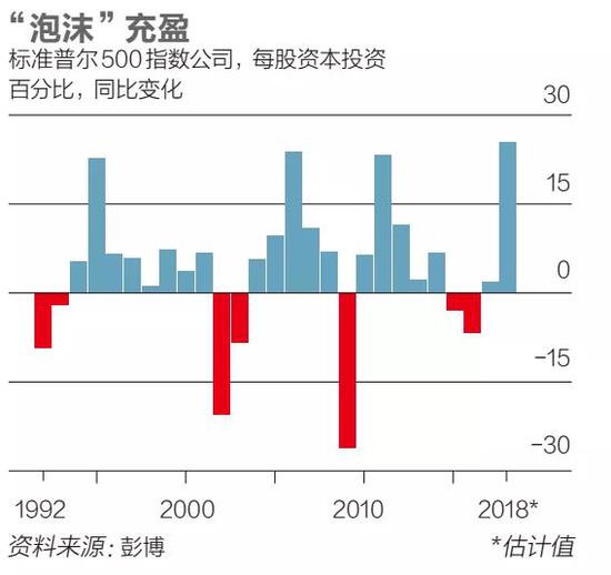 2018年的繁荣简直像梦想成真。截至10月,标准普尔500指数中90%的公司销售额增长,而过去十年的平均值为69%,2009年还曾低至36%。约52%的公司利润率上升。总体来看,标准普尔500指数企业的利润同比增长了25%,如果去除减税的影响,增长为16%。看多情绪带动下,企业纷纷增加投资。包括资本支出和研发投入在内的投资增长了18%。硅谷生机勃勃,房屋建筑商也一样,利润达到2006年以来最高水平,铁路和人力资源公司表现也很好。