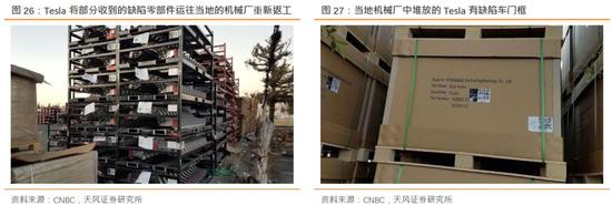 厂外对于零部件供应商的过分压榨,包括Tesla零部件的定制化需求导致很多供应商难以经济化量产,也导致产品部件的缺陷率要高出行业规范。此前CNBC援引Tesla工程师称Fremont工厂生产收到的零件中有40%需要返工,而Musk也归咎部分第三方供应商数量失控,并预计进行重组整顿来减少不合格供应商。