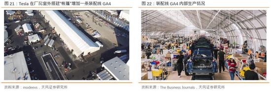 从“帐篷”装配线GA4内部生产图片可以看出,产线设置在凌乱放置的零部件纸箱等物料当中,装配线大幅退回人工生产状态,我们此前便强调公司过分追求流水线自动化的方式反噬了产能。公司也承认GA3总装线的产能瓶颈,原始设计通过高度自动化机械臂进行零部件装配,但由于产线密度和机械臂的高停机时间,自动化产能难以突破。“帐篷”临时装配线更多是Tesla为了追求产能目标的捷径之举,对比传统车企厂房中井然有序的产线布局和空间设置,我们并不认为Tesla的生产实现了以丰田为代表的JIT生产方式(Just in time)的高效性和经济性。整体来说,我们认为Tesla当下困境源于对传统汽车生产制造典型的供应链产能瓶颈忽略所致。
