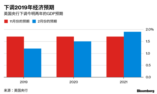 之前,英国央行对经济前景发表了悲观的看法,预计今年经济增长幅度将创2009年以来的新低,投资将会剧烈下滑,并下调了对薪资增长幅度的预期。卡尼表示,“脱欧的迷雾”也在造成紧张的氛围。