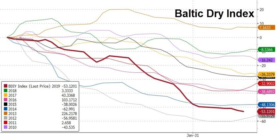 华尔街日报指出,全球经济放缓,加上中国农历新年期间和巴西淡水河谷矿难后的需求疲软,正将船运费率拖至接近纪录低点的水平,并且业内几乎没有人预计情况会很快好转。