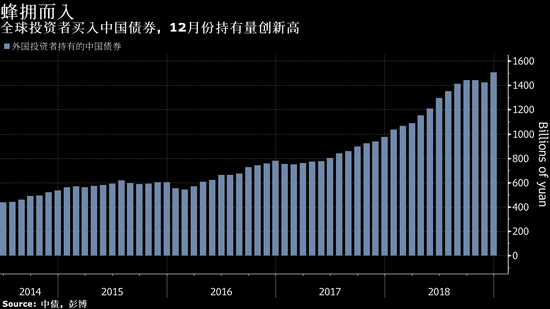 就在Murphy接受采访的几天前,彭博有限合伙企业称,人民币计价的中国债券将从2019年4月起被纳入彭博巴克莱全球综合指数。彭博有限合伙企业是彭博新闻社的母公司。市场参与者预计其他主要指数提供商也将及时纳入中国债券。