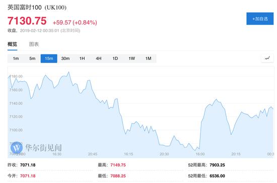 周一,成分股中多为跨国公司的英国富时100上涨0.84%,收于7130.75点。
