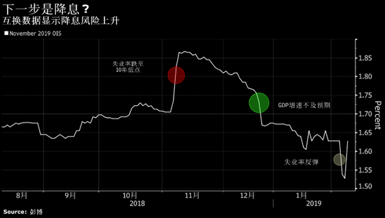 “新西兰央行将重申以数据为依据的‘观望’立场,但‘担忧’因素在增加,”澳新银行驻奥克兰的首席新西兰经济学家Sharon Zollner说。“当全球增长放缓时,新西兰经济不可避免的会感受到冲击,而且澳大利亚等国的数据都急转直下,而这占到新西兰商品出口的40%。”