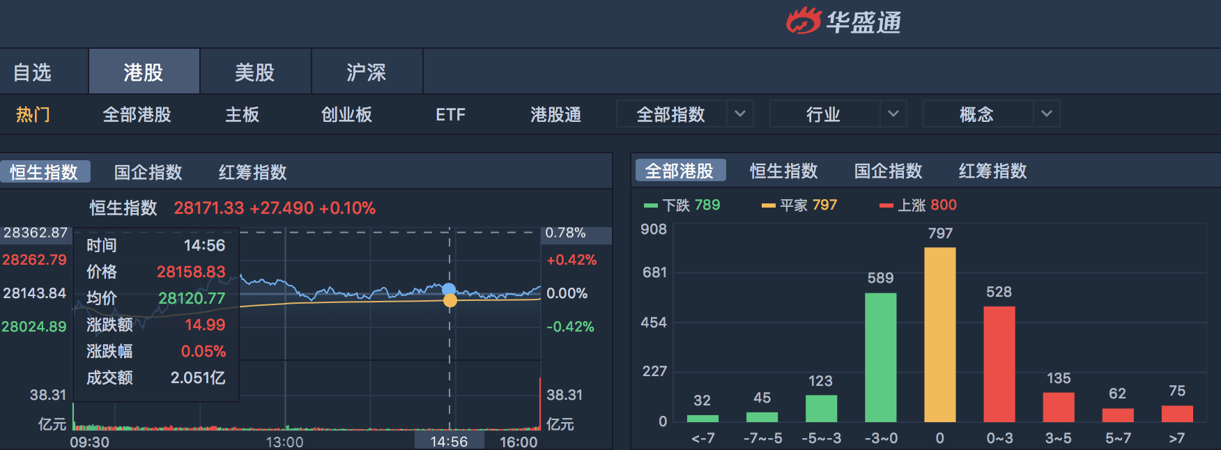 周二,恒生指数涨27.49点或0.1%,报28171点,全日成交额达959.89亿。国企指数涨0.25%,报11044.65点,红筹指数涨0.25%,报4408.29点。