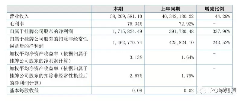 根据百年育才发布的2018年半年度报告,截至2018年6月30日,百年育才实现营收5820.96万元,同比增长44.29%;归属于挂牌公司股东的净利润为171.58万元,同比增长337.96%;净利润164.42万元,同比增长319.69%。