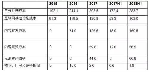 其中,在线娱乐票务占比最重,但已由2015年占比99.6%下降至2018年上半年的60.6%,目前收入占比第二大的业务为娱乐内容服务,2015年为0,2018年上半年占总收入比例为29.6%,娱乐电商服务占比5.2%,广告服务及其他占比4.6%。