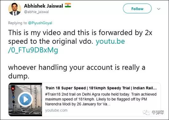 这段视频,其实贾斯瓦尔早在12月20日就发布了。速度其实是每小时160公里,但经过印度铁道部长的加速,感觉有320公里的拉风。