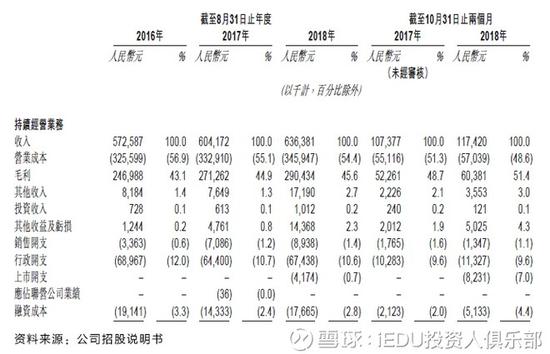 截至各年度8月31日,中汇集团毛利从2016年的2.47亿元增长至2018年的2.9亿元,增幅17.4%,毛利率从43.1%增长至45.6%,增幅约为5.8%。此外,截至2018年10月31日前两个月,毛利收入约为6038万元,较2017年同期增长约812万元,增幅约为15.53%,毛利率也由48.7%增至51.4%,增幅约为5.5%。