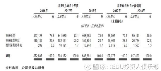 根据上市材料披露,截至2018年10月31日,中汇集团当年收入达到7.5亿元人民币,华商学院占比74%,华商职业学院占比24.4%。截至每年8月31日,华商学院收入从2016年的4.27亿元增长至2018年的4.68亿元,增幅约为9.6%;华商职业学院收入从1.45亿元增长至1.56亿元,增幅约为7.7%。