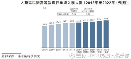 根据弗若斯特沙利文统计,大湾区民办高等教育行业总入学人数自2013年的56.8万人增长至2017年的65.3万人,年复合增长率达到3.5%。据其预测,到2022年,大湾区民办高等教育行业总入学人数将达到71.9万人,自2017年至2022年的复合增长率为1.9%。