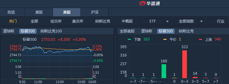 周三,美股继续上涨,标普500上涨0.30%,道指上涨0.46%,纳指上涨0.08%。