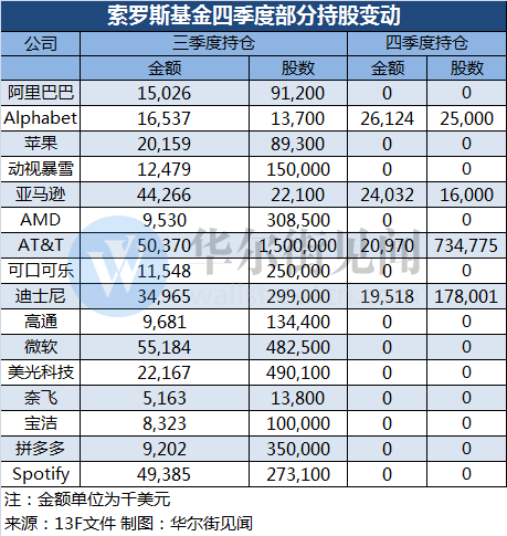 14日提交给美国监管机构的13F持仓报告显示,索罗斯基金管理公司在去年第四季度清仓了动视暴雪、AMD、苹果、微软、奈飞、阿里巴巴、可口可乐的股票,减持AT&T、亚马逊、迪士尼,但大举增持谷歌母公司A类股持仓。