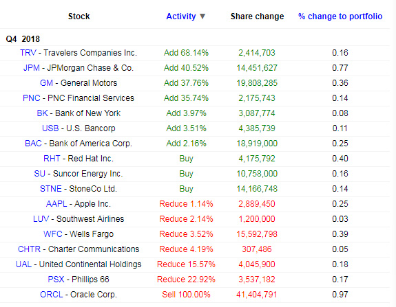 伯克希尔·哈撒韦公司2018年第四季度持股变动情况