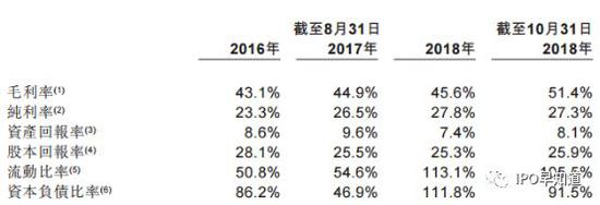 中汇集团最亮眼的部分在于毛利率,其毛利率收入相当可观。2016年、2017年及2018年截至8月31日止年度以及截至2018年10月31日止两个月,中汇集团毛利分别为2.47亿元人民币、2.71亿元人民币、2.90亿元人民币及0.60亿元人民币,毛利率分别为43.1%、44.9%、45.6%及51.4%。
