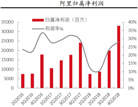 电商业务运营效率提升,利润率改善,为新业务的开展提供有力保障。由于新业务并表,公司的核心商贸板块利润率及公司整体Non-GAAP净利率同比下滑,但排除饿了么、Lazada和新零售业务等影响,电商业务的调整EBITA同比增长31%,高于广告和佣金收入增速,说明利润率在改善。