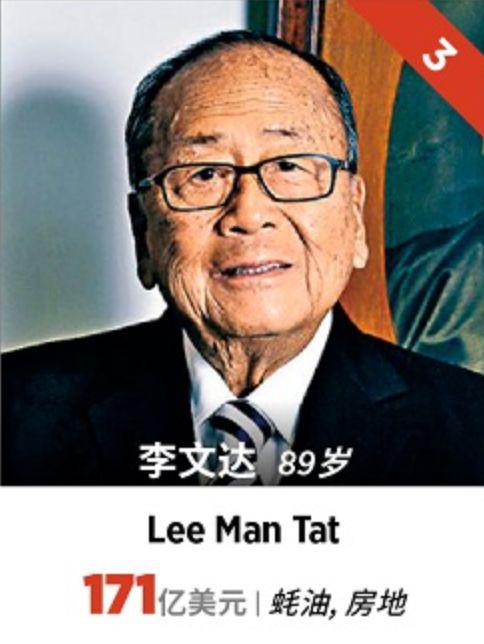 李锦记的李文达却成为榜单中最抢眼的角色。李文达以171亿美元,从去年富豪榜的第11名一跃成为第三名,较去年的89亿美元增长近1倍。
