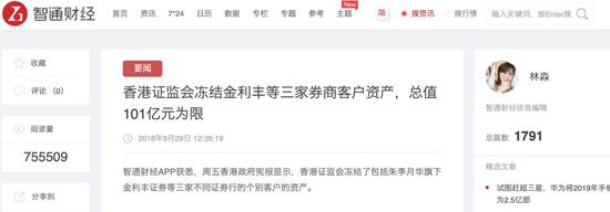 但也是2018年以来,香港证监会动作频频,对朱太可谓“重点照顾”。既是警告称她的公司金利丰金融股票过度集中在少数投资者手中(这就意味着比较容易操作),又是冻结了其客户资产,数额上到了百亿。