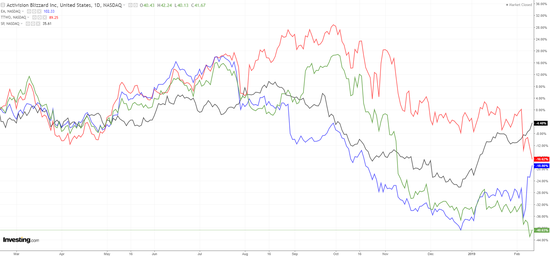 上周三,这两家公司发布财报后,股价大跌13%。值得注意的是,这两家公司还连累了动视暴雪(NASDAQ:ATVI),出于对整个行业的担忧,动视暴雪也下跌了10%。