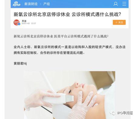 2018年8月20日,新氧的云诊所运营团队结束了北京杨庆培丽扬医疗美容诊所的所有治疗项目服务,后又下线了深圳的新氧云诊所,进军线下医美机构以失败告终。
