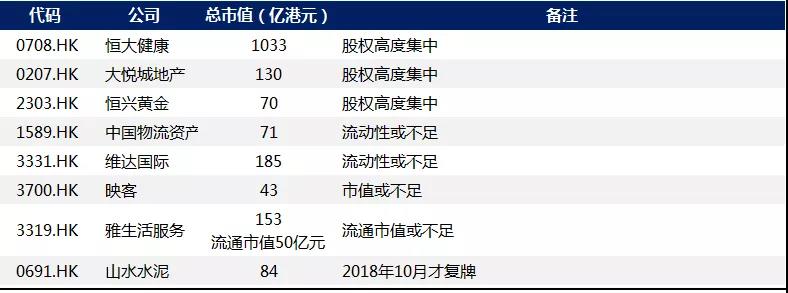 下列是一些市值水平或是流通量在边缘徘徊,或是基于其他原因而导致入选机会较少的股票。由于港股通的入选准则一直以来都没有一个很明显的门槛,所以这些股票也有成为黑马入选的机会。