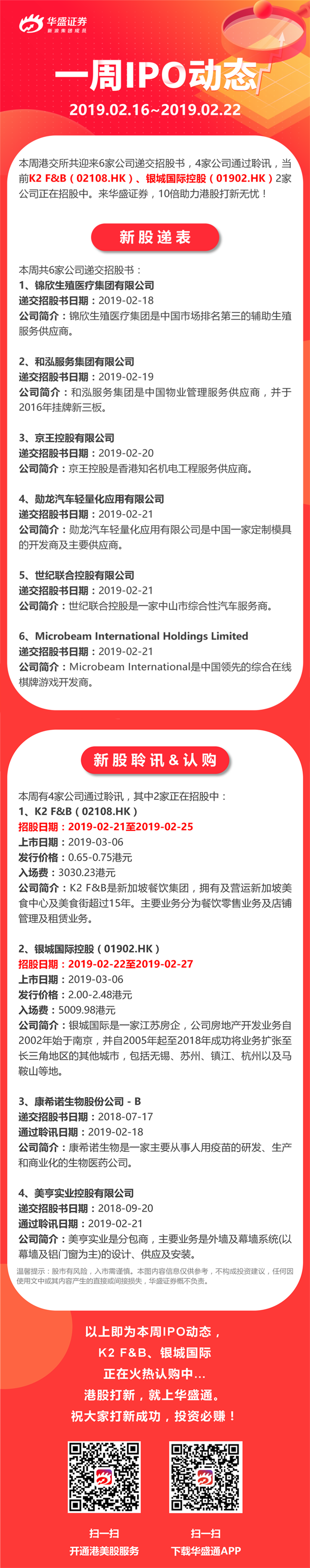 一周IPO动态 | 银城国际、K2 F&B正在招股中