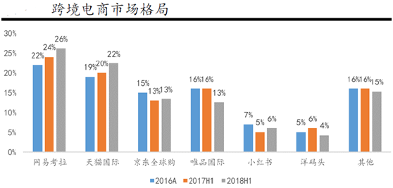 2017年网易考拉海购成为国内最大的跨境电商平台,2018年上半年市占率达26%,18年12月MAU超过1600万,但距离头部综合电商仍有一定差距。