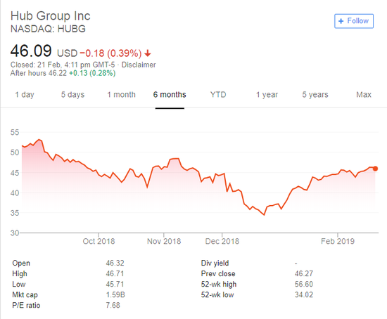 卡车-铁路联运提供商Hub Group股价自1月以来上涨了23.90%。