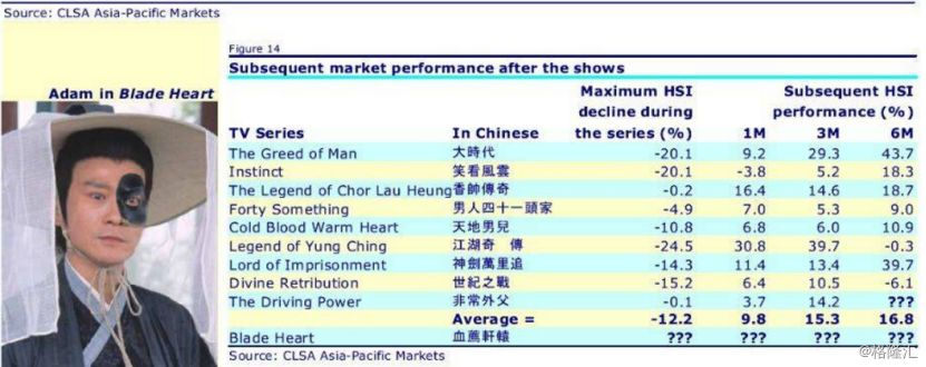 1992年10月5日《大时代》,播出后恒生指数一个月内跌幅曾多达1283点。