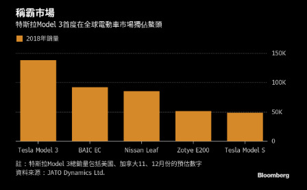 JATO Dynamics Ltd.指出,在市场上推出的第一个全年,Model 3的销量飙升至138,000辆左右,轻松击败北汽集团EC系列的约92000辆。这家市场研究机构估计2018年全年电动车总销量增长约74%,达到126万辆。