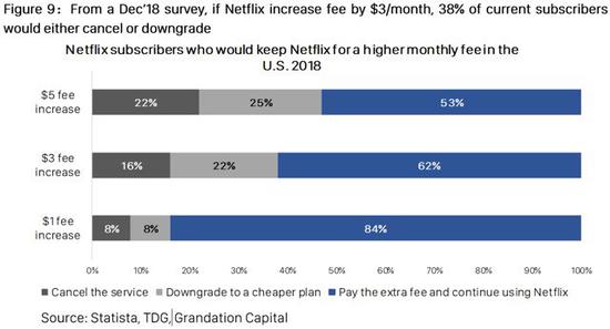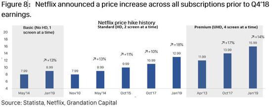 市场认为该公告证实了Netflix的定价能力,其股价相应上涨。我们认为新价格处于观众支付意愿的极限。面对来自亚马逊Prime Video和Hulu的当前竞争,以及来自迪士尼的挑战; Netflix很难在未来两年内增加费用。