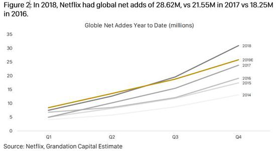 Netflix的主要业务是基于订阅的流媒体服务,提供在线电影和电视节目,包括电影和电视节目的内部制作。截至18/31/18,Netflix在全球拥有超过1.39亿的付费订阅,其中包括来自美国的5800万和来自国际的8100万。除了中国大陆,叙利亚,朝鲜,伊朗和克里米亚之外,Netflix几乎遍布全球。2018年,Netflix净增28.62M,同比增长32.8%。