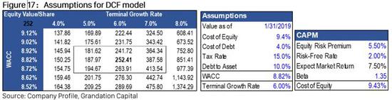 图15 :DCF模型。我们的DCF分析显示公允价值为252美元。基于8.8%的WACC和6%的长期增长假设。