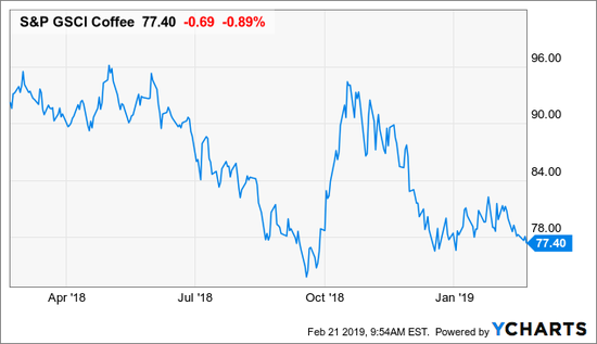 整个咖啡行业目前的价格非常低廉。这对咖啡种植者来说是一个问题,但是有可能对星巴克的盈利能力施加压力。眼下,GSCI咖啡指数呈现出77.40价格是一致的所有时间指数的低点。这种转变为咖啡馆净收入压力的风险很大,即使这是一个温和的好转。
