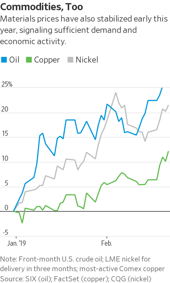 美国原油今年截至上周五反弹26%,创史上开年36个交易日最大涨幅,提振了埃克森美孚和雪佛龙公司(Chevron Co., CVX)等生产商的股价。包括对建筑业至关重要的工业金属在内的其他大宗商品也触及数月来的最高水平,向将此作为一项经济指标的投资者释出令人满意的增长信号。