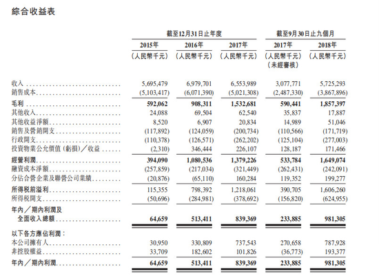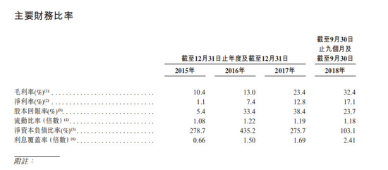 据招股书显示,德信近几年毛利率大幅攀升,2015-2017年及截止2018年9月30日的前九个月,德信中国的毛利分别为5.92亿元、9.08亿元、15.33亿元及18.57亿元,毛利率分別为10.4%、13.0%、23.4%及32.4%。