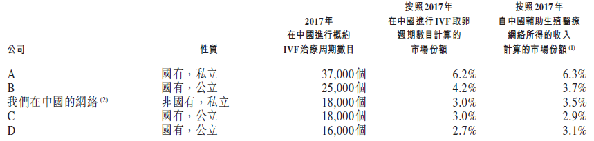 根据招股书,作为一家辅助生殖服务供应商,锦欣生殖医疗是作为仅约20家2017年在中国进行超过5000个IVF治疗周期的获许可的辅助生殖服务供应商之一。
