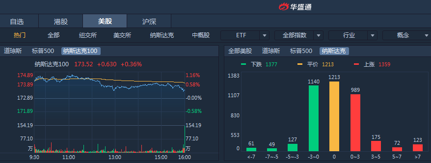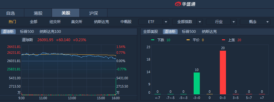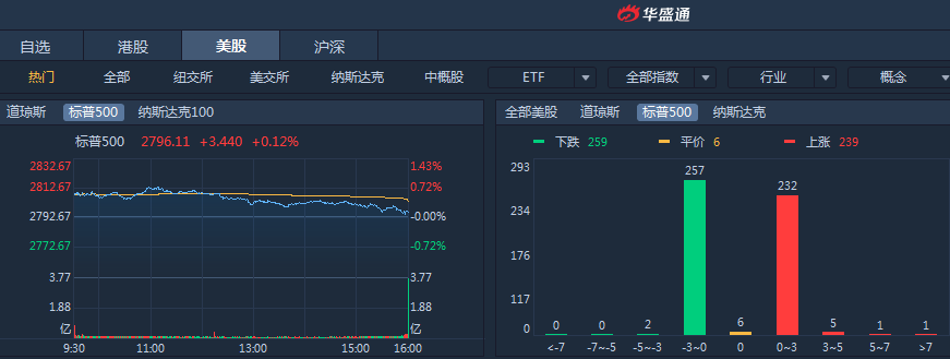 受中美贸易情绪推动,美股涨至近四个月新高,热门中概股普涨。周一标普500指数收涨0.12%,道指收涨0.23%,纳指收涨0.36%。