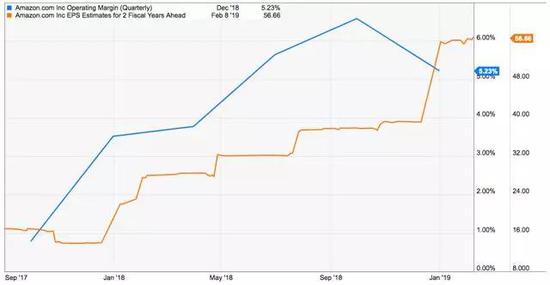 在过去三个月中,AWS的收入份额从8%增加到10%。整个FY18,收入份额从10%增加到11%。如果与AWS相比其他细分市场当前增长放缓的趋势仍在继续,那么我们应该会看到AWS的收入份额在明年年底达到16%至18%。这将对公司的整体营业收入产生重大影响。