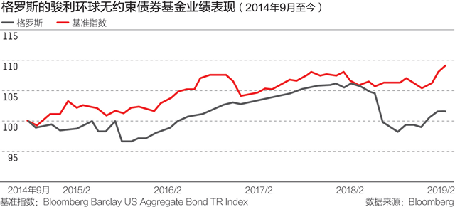2018年,格罗斯管理的骏利环球无约束债券基金(下称“骏利基金”)净值下跌了3.88%,其管理的资产在这样不理想的业绩下也不断缩水,从年初的22.4亿美元下降到年底的9.5亿美元,跌幅高达57.59%。剩余的资金中还包括其个人投资的7亿美元,而造成这一切的主要原因是,格罗斯去年误断美国债市为温和熊市。