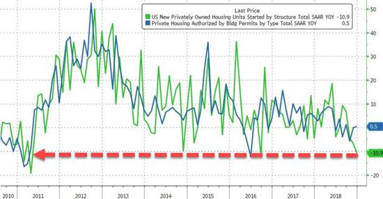 同比方面,新屋开工数据下跌10.9%,为2011年3月以来的最大降幅。