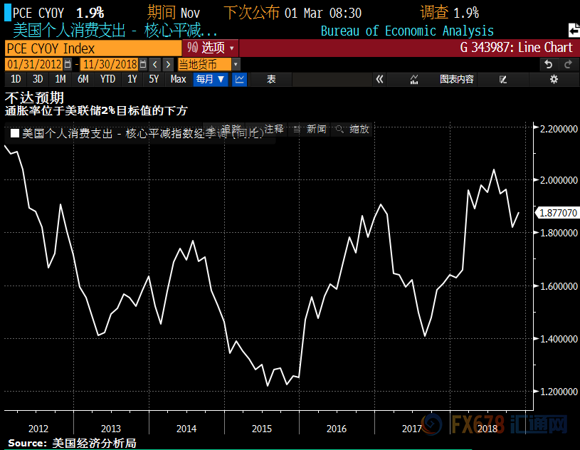 从美联储青睐的指标来看,在截至11月的12个月中,不包含波动较大的食品和能源价格的通胀为1.9%。2012年以来,该指标仅有一次超过2%。