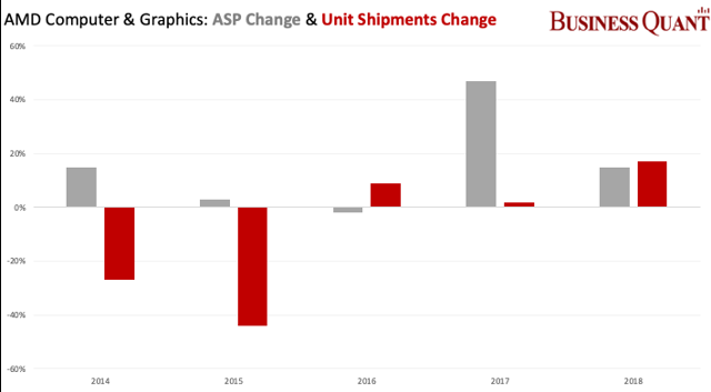 未来AMD可能从以下几个方面受益:更高的出货量,平均售价提升,市场份额增长,进入GPU和CPU产品系列的高端子市场、零售和服务器市场,以及业绩增长带来的良性循环,刺激公司推出更具竞争力的产品。