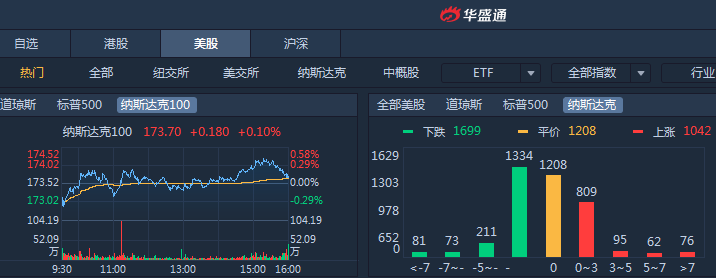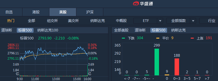 鲍威尔证词及不佳楼市数据压低股指,周二美股微跌,收盘标普跌0.08%,道指跌0.13%,纳指跌0.07%。