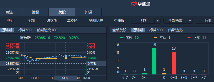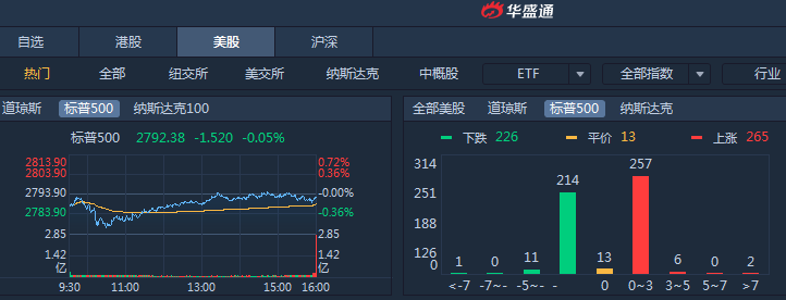 市场关注地缘政治和鲍威尔国会听证,美股周三微跌。道指收跌0.28%,连跌两日,标普500指数收跌0.05%,纳指收涨0.07%。