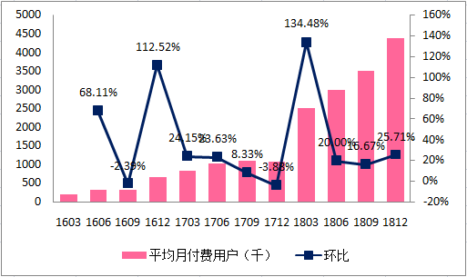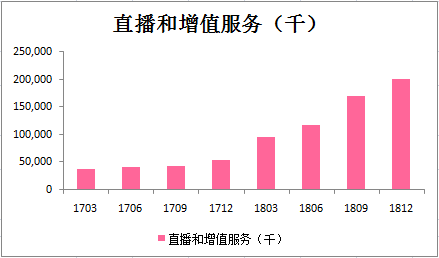 直播与增值业务四季度营收2.02亿环比增长19%同比增长276%。受惠于会员优惠等措施,四季度付费用户环比增长25.71%,由此前的350万增长至440万,而相比起2017年的106.6万的付费用户数据,整个18年付费用户数获得了大幅增长。同时在直播方面,由于投资了游戏《英雄联盟》和《守望先锋》的相关战队并获得了赛事的转播权,直播类目的人气获得了大幅提升,也间接提升了业务的增长,并为B站起到了非常好的宣传效果。