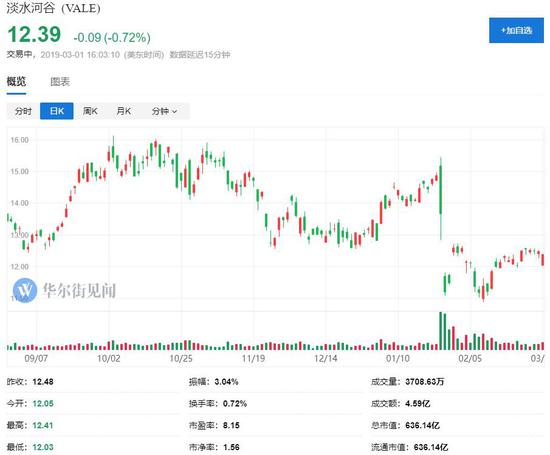 可能罚款的消息发布后,在美上市淡水河谷盘前股价快速转跌,一度跌4.5%。当天低开逾3%,盘初跌幅一度达到3.6%,一度跌至12.03美元,创今年2月21日以来新低,最终收跌0.72%,收报12.39美元,同样收创2月21日以来新低。