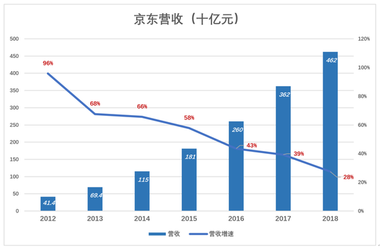2016年京东营收增速跌破50%这个重要关口,“京东号”列车逐渐慢了下来。