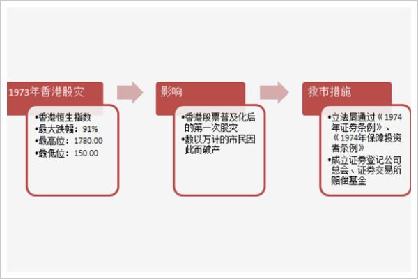 1987年的全球股灾虽给香港带来冲击,导致联交所停市4天,但未伤及根本。1989年5月1日,为纠正股灾危机,香港证监会成立。15日,恒指站上3309点,联交所正式跻身全球主要证券交易所之列。